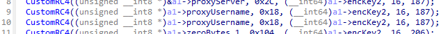 なお、設定情報の中にあるプロキシサーバへのアクセス時に使用されるユーザ名は、なぜか他の値と違い二重に暗号化されていました。逆にパスワードは暗号化されていないことから、この挙動は攻撃者 (マルウェア開発者) のミスであると考えられます。