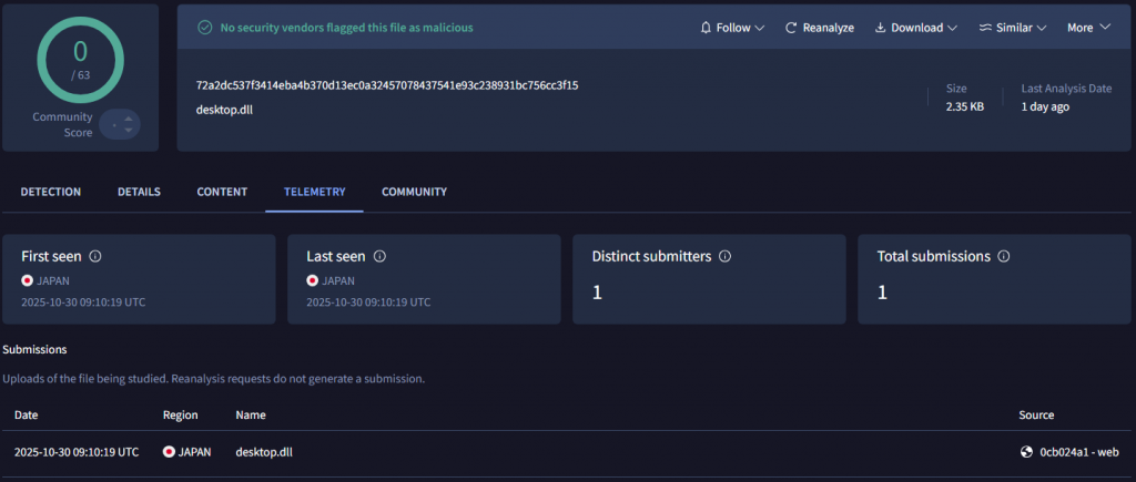 なお、今回解析したファイル群は10月30日に日本からVirusTotal上にアップロードされていることから、UNC5174による日本国内の組織を標的とした攻撃で用いられたマルウェアである可能性があります。