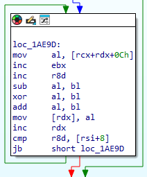 その後、図3に示す処理でシェルコード内に含まれるデータを復号します。