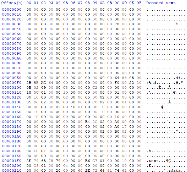 復号後のデータはLZNT1圧縮されており、これは RtlDecompressBuffer 関数を呼び出すことで展開されます。展開されたデータは図4のようなPEヘッダのマジックナンバーが削除されたDLLファイル (Type 1 Backdoor) で、シェルコードによってエントリーポイントが実行されます。
