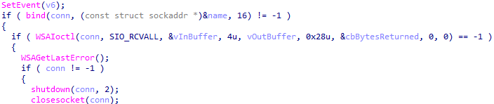以前観測されたマルウェアではPEファイル内に平文でC2サーバのアドレスといった設定情報が埋め込まれていましたが、このマルウェアは初期化処理の段階で、プロミスキャスモードを用いて以下の条件に合致するパケットをフィルタして、そのペイロードからC2サーバのアドレスや通信方式といった設定情報を取得します。