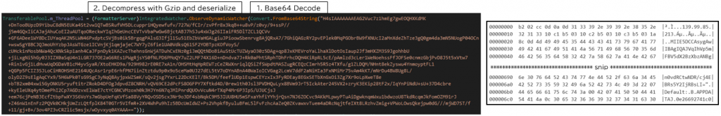 Once PureHVNC is executed, it first Base64 decodes, GZip decompresses, and deserialize the hardcoded configuration data. Similar to TorNet, PureHVNC uses Protocol Buffers for deserialization. In this configuration data, information such as the address, port number, and certificate of the C2 server is included.