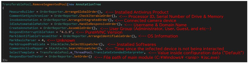 After all the initialization procedure, PureHVNC will perform initial communication with the C2 server5. This communication includes various information about infected system, which it collects using API functions and WMI queries.