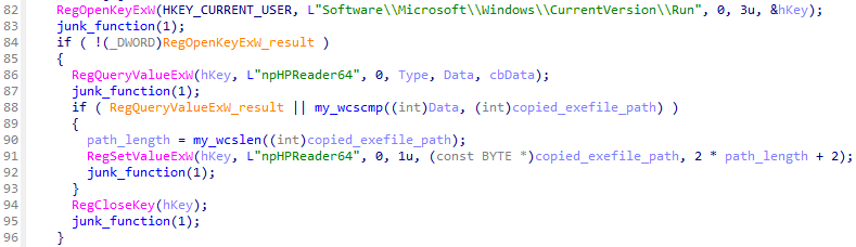 Finally, the loader writes a value to the registry key to achieve persistence.