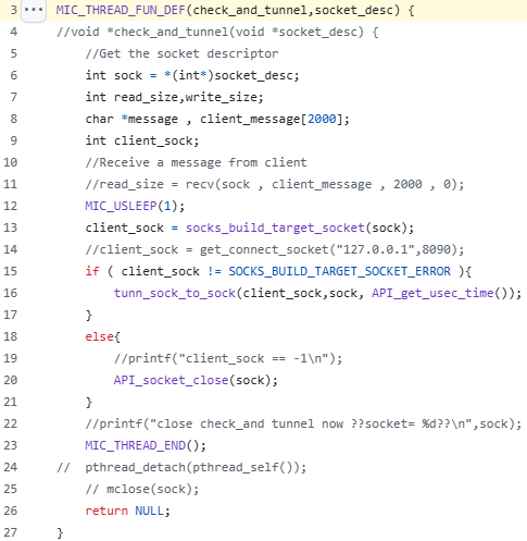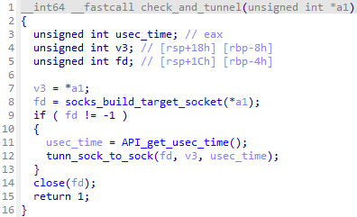 SOCKS5 proxy function was implemented using the source code of EW (EarthWorm), the proxy tool developed by Chinese cybersecurity professional. Multiple entity has reported that EW is been abused by attackers (like Volt Typhoon), so original developer has already finished the distribution of EW’s source code and executable. However, there are still many forked (copied) repository of EW in the wild, to ultimately anyone can obtain it.